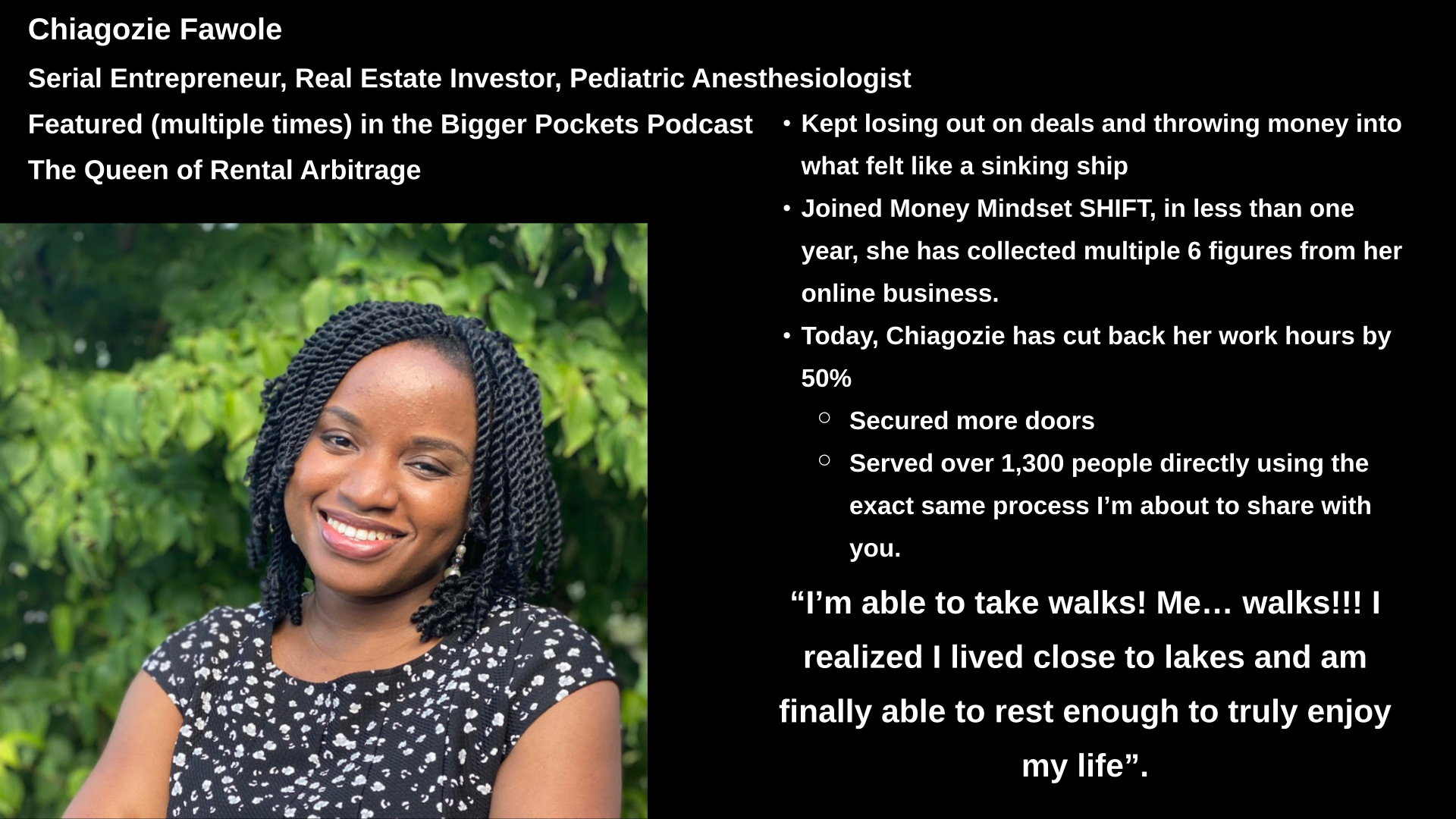 Where would 2x to 10x of your current revenue place you?The Money Mindset SHIFT. system is your KEY to scalability. I want you to look back and laugh at how small the investment into this process was compared to the revenue you made from it.